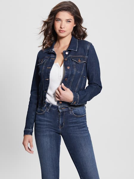 Style your denim jackets with a cute dress and sneakers in the summer or a t-shirt high waisted jeans and boots in the winter for. Girlfriend Denim Jacket. Short fitted womens jacket with quilted dark-grey denim and sequin details.